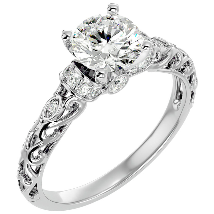 1 3/4 Carat Vintage Diamond Engagement Ring In 14 Karat White Gold