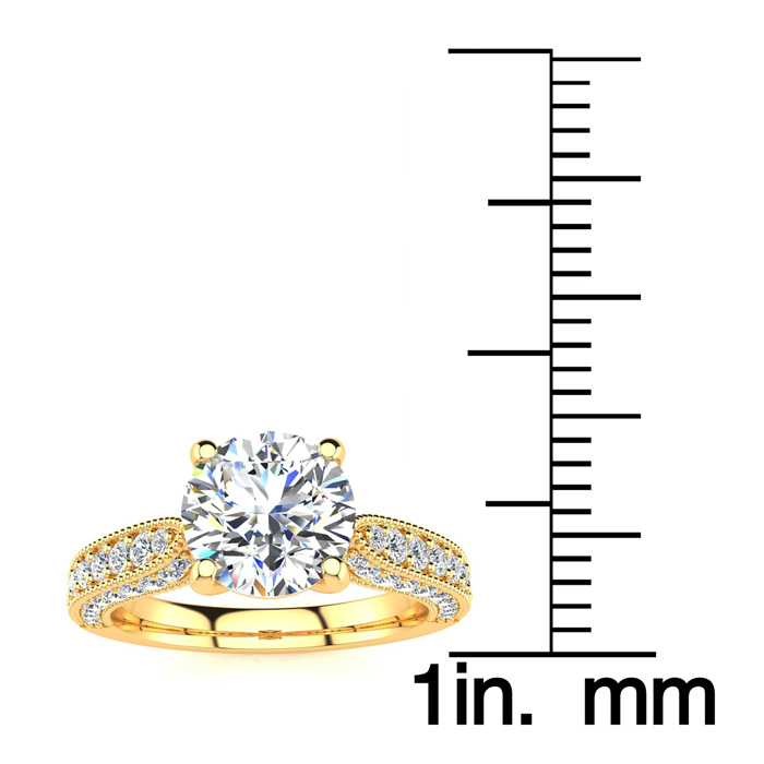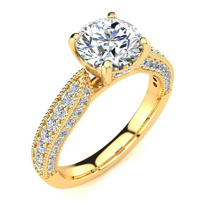 1 3/4 Carat Natural Vintage Diamond Engagement Ring In 14K Yellow Gold, 1 1/3 Carat Natural Center Diamond