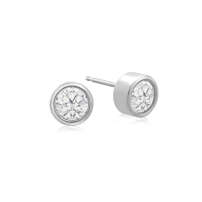 1/3 Carat Natural Bezel Set Diamond Stud Earrings Crafted In 14 Karat White Gold