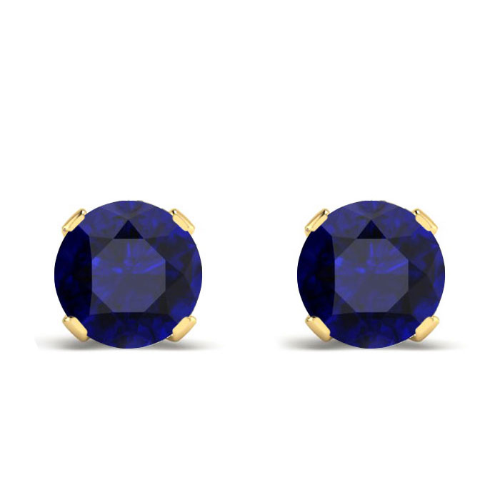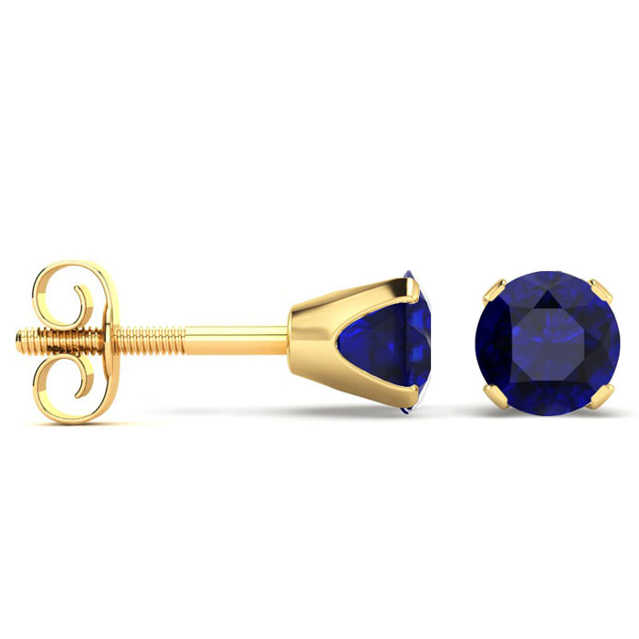 For all of you September Birthstone babies, here are the perfect round cut solitaire blue sapphire stud earrings mounted in solid 14 karat yellow gold over sterling silver, with friction earring backs.
