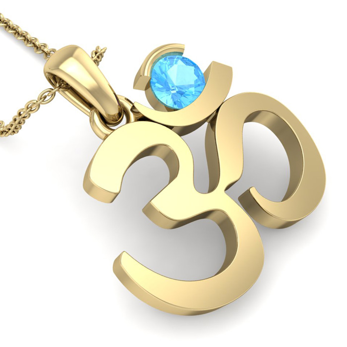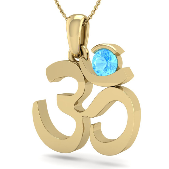 1/3 Carat Blue Topaz Om Necklace In 14 Karat Yellow Gold, 18 Inches