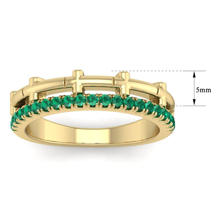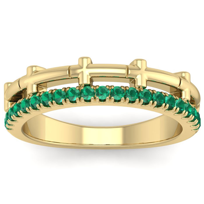 1/3 Carat Emerald Cross Wedding Band In 14 Karat Yellow Gold