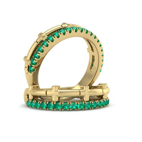 1/3 Carat Emerald Cross Wedding Band In 14 Karat Yellow Gold