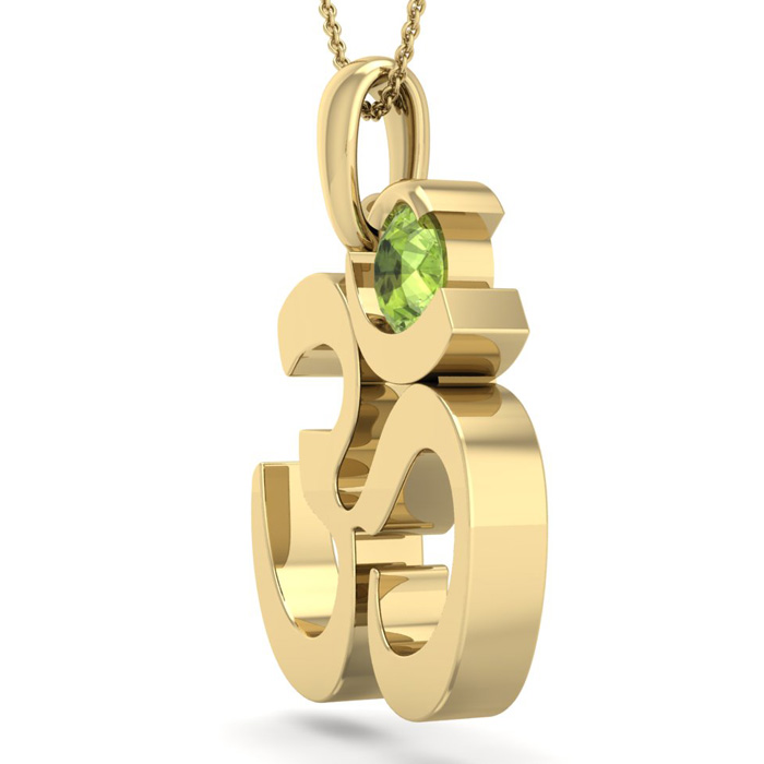 1/3 Carat Peridot Om Necklace In 14 Karat Yellow Gold, 18 Inches