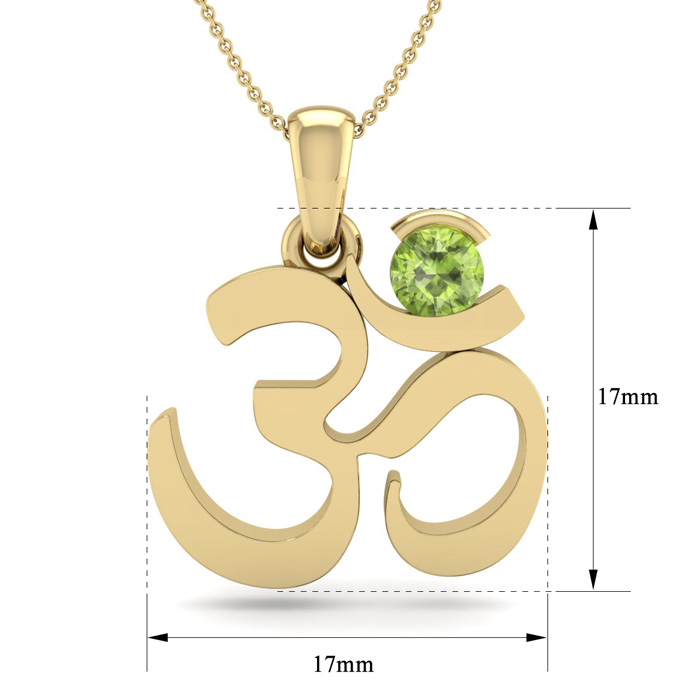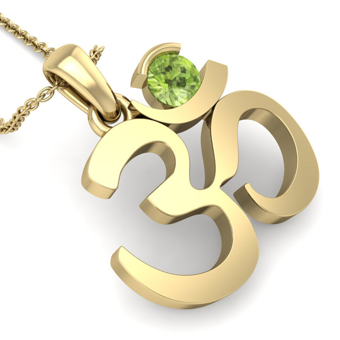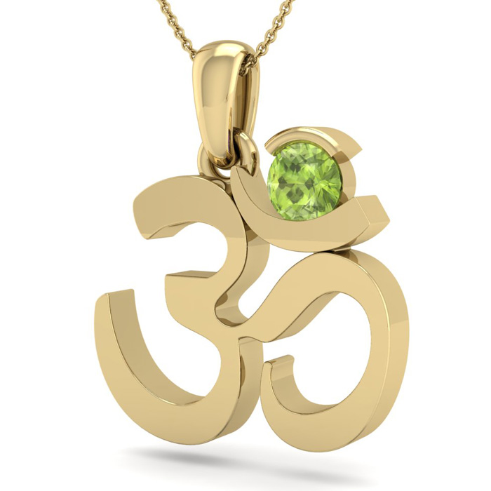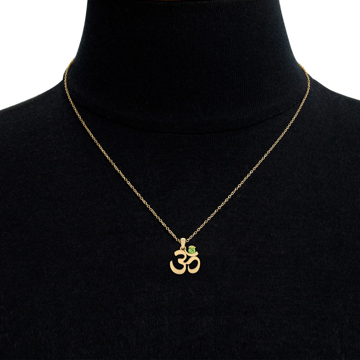 Retrograde Birthstones™ 1/3 Carat Peridot Om Necklace In 14 Karat Yellow Gold, 18 Inches