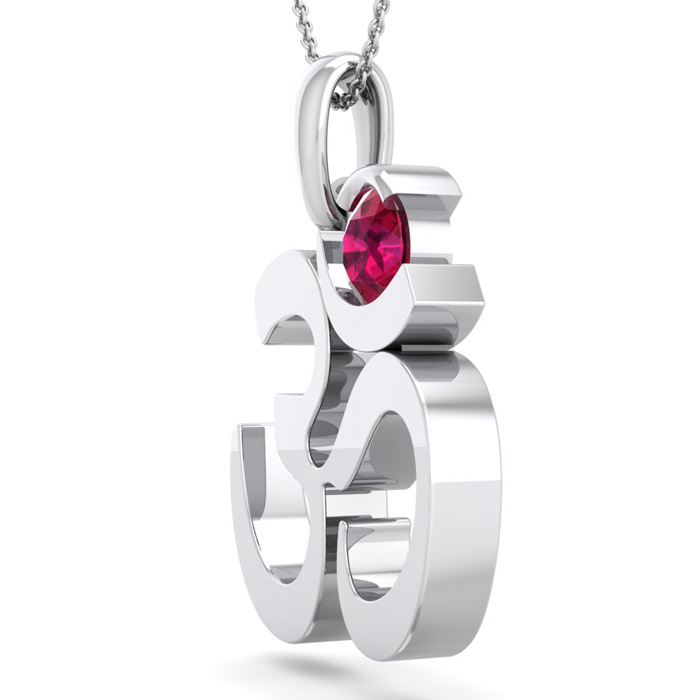 1/3 Carat Ruby Om Necklace In 14 Karat White Gold, 18 Inches