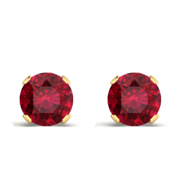 For all of you July Birthstone babies, here are the perfect round cut solitaire ruby stud earrings mounted in solid 14 karat yellow gold over sterling silver, with friction earring backs.