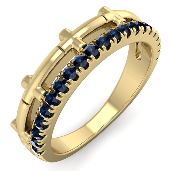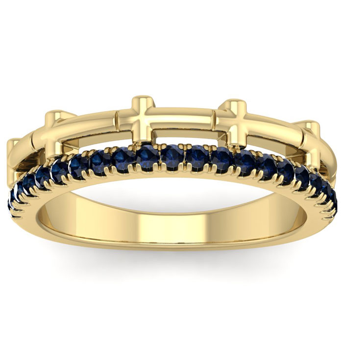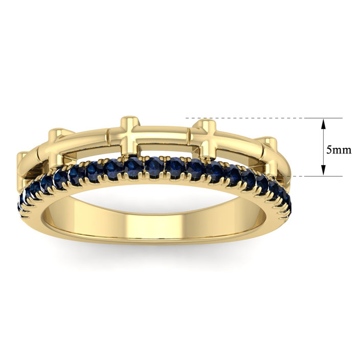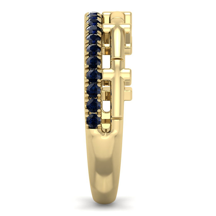 1/3 Carat Sapphire Cross Wedding Band In 14 Karat Yellow Gold