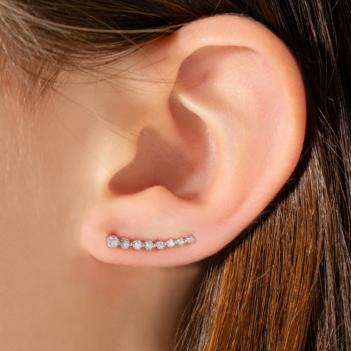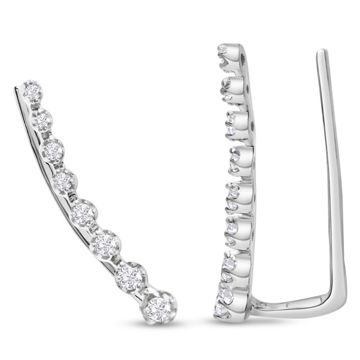 1/4 Carat Diamond Ear Climbers In Sterling Silver
