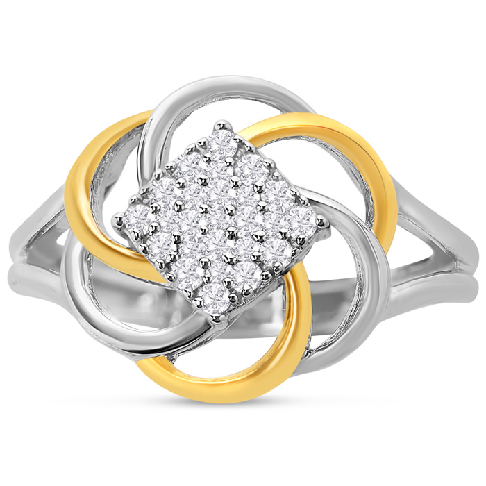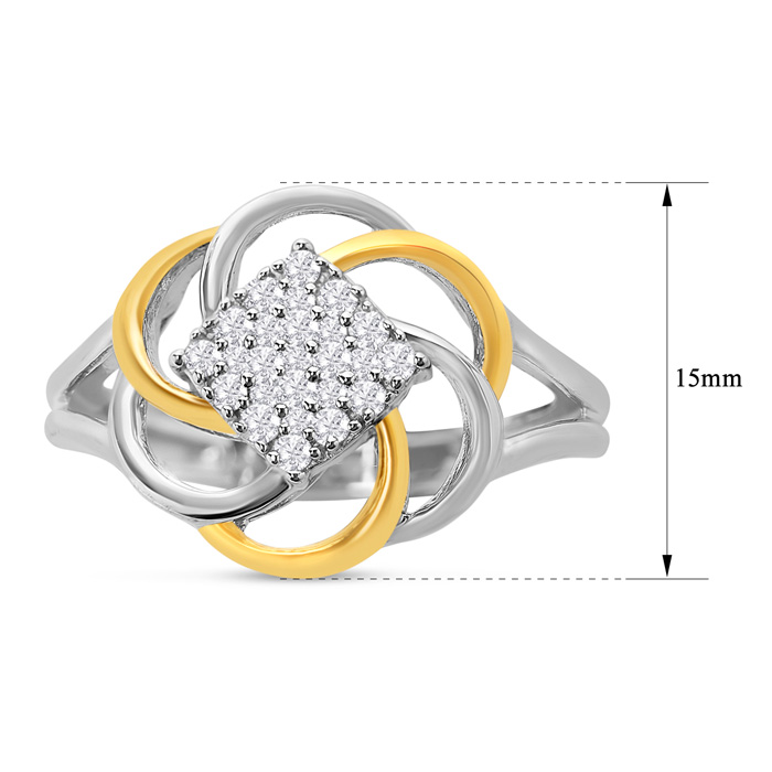 1/4 Carat Diamond Flower Ring In Two Tone Sterling Silver, Size 6