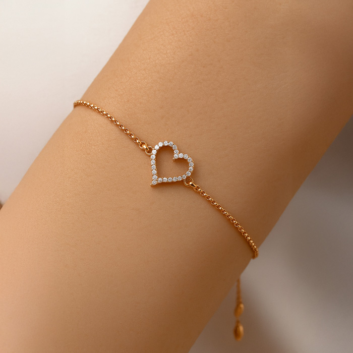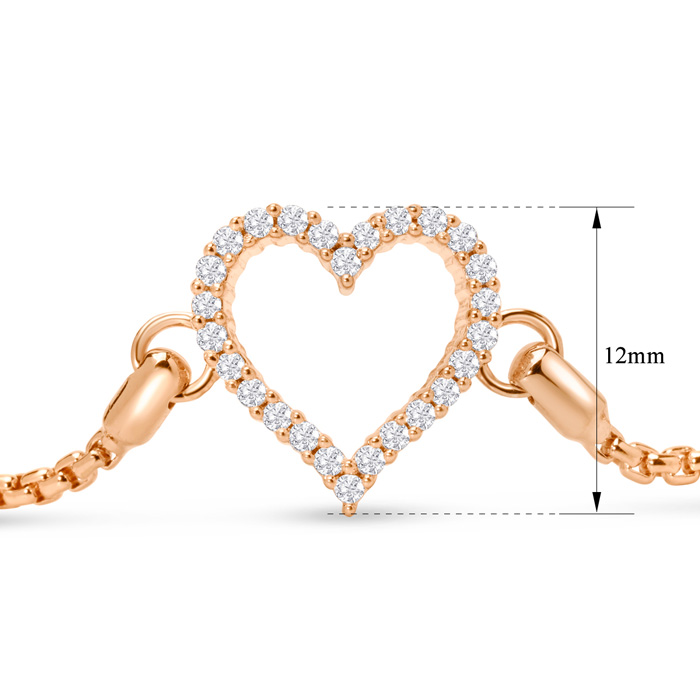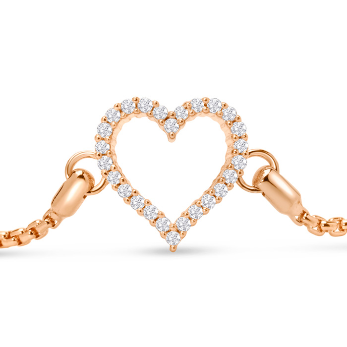 1/4 Carat Diamond Heart Bracelet In 14K Rose Gold Over Sterling Silver, Adjustable 6-9 Inches