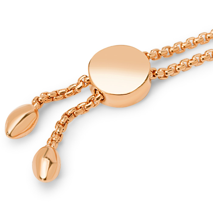 This incredible bracelet feature 26 sparkling diamonds adoring a 1/2 inch heart in G-H color, SI1-SI2 clarity totaling 1/4 carat. This bracelet is in 14k rose gold over sterling silver. The bolo style bracelet is adjustable up to 9 inches and will fit every wrist size!
