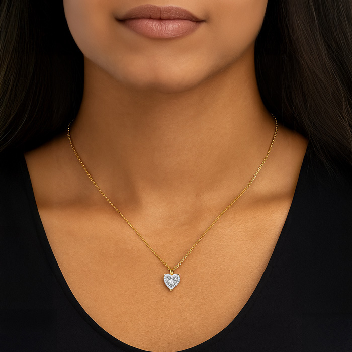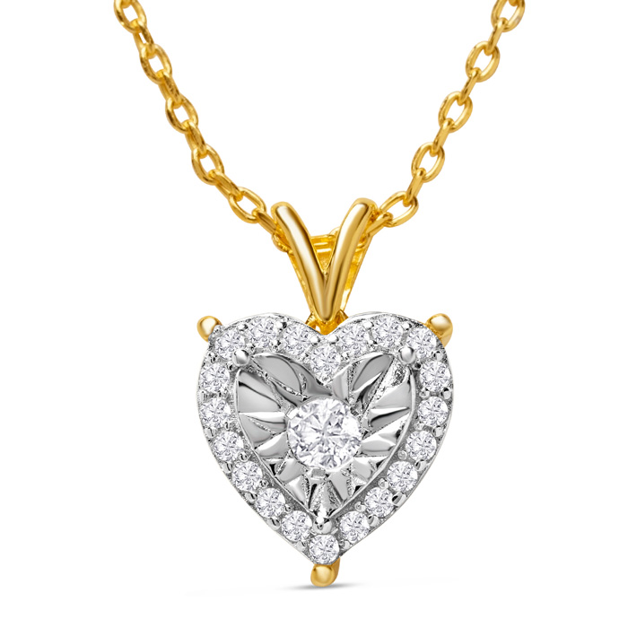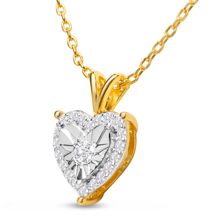 1/4 Carat Diamond Heart Necklace In 14K Yellow Gold Over Sterling Silver, 18 Inches