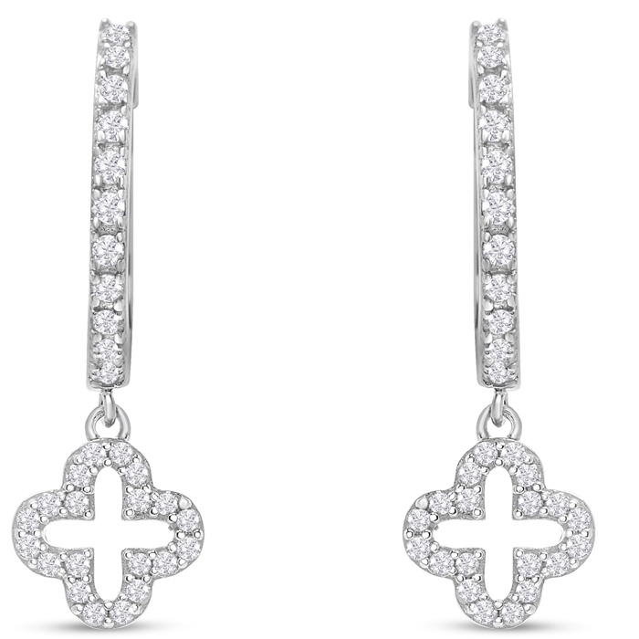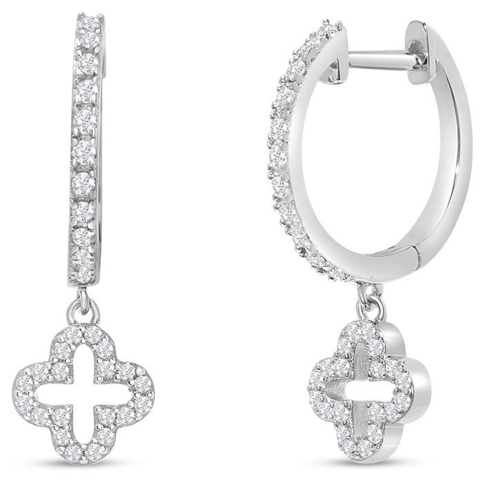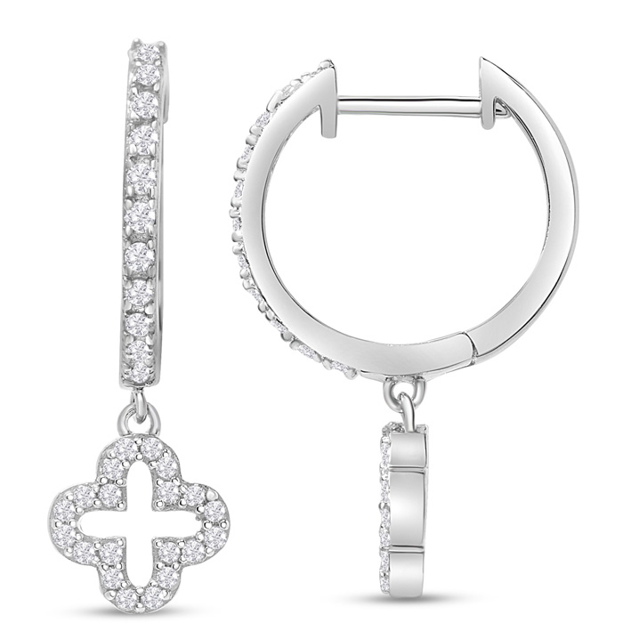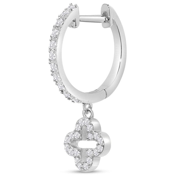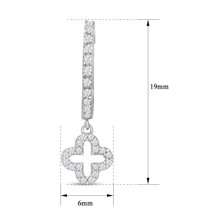 1/4 Carat Diamond Hoop Earrings With Dangling Flower In Sterling Silver, 3/4 Inch