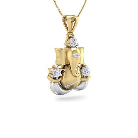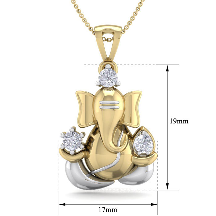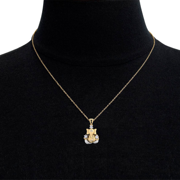 1/4 Carat Natural Diamond Lord Ganesha Necklace In 14 Karat Yellow Gold, 18 Inches