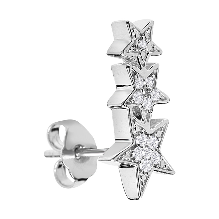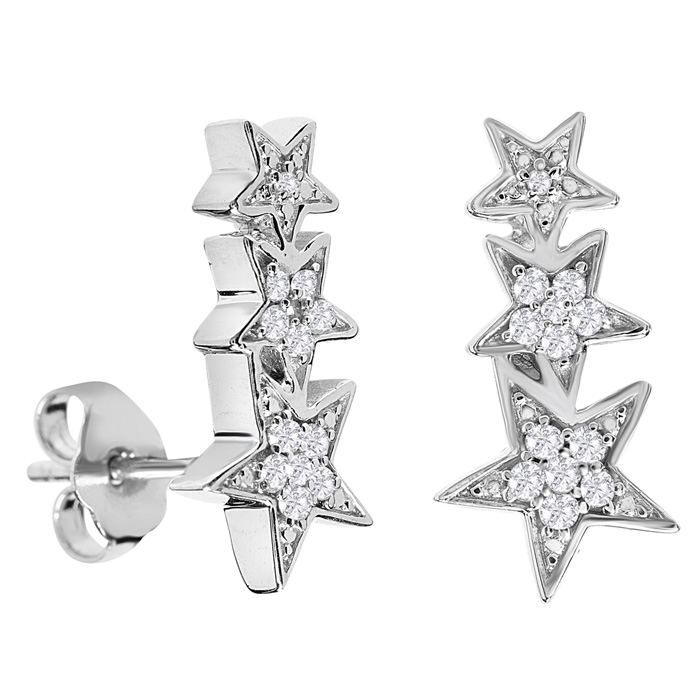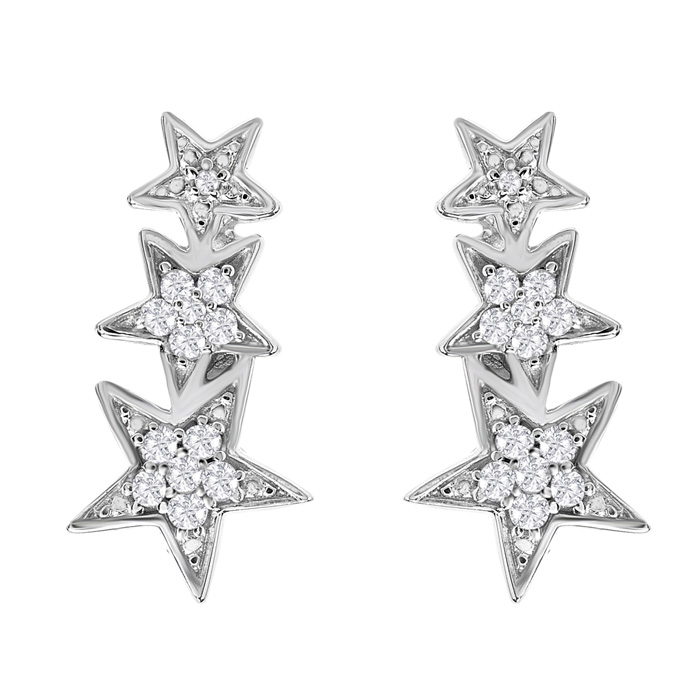1/4 Carat Diamond Star Ear Climbers In White Gold Overlay