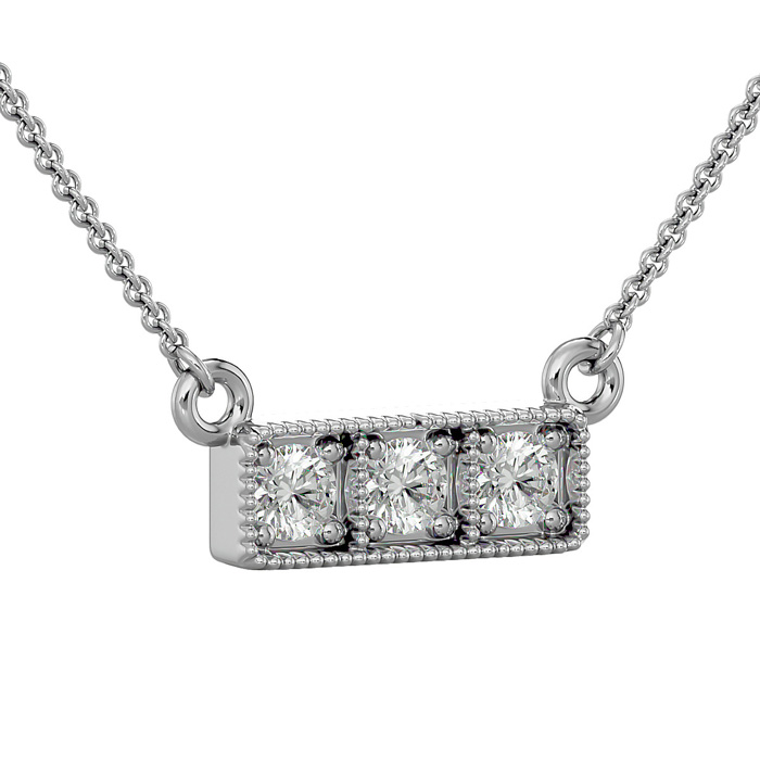 1/4 Carat Diamond Three Stone Necklace In 10 Karat White Gold, 18 Inches