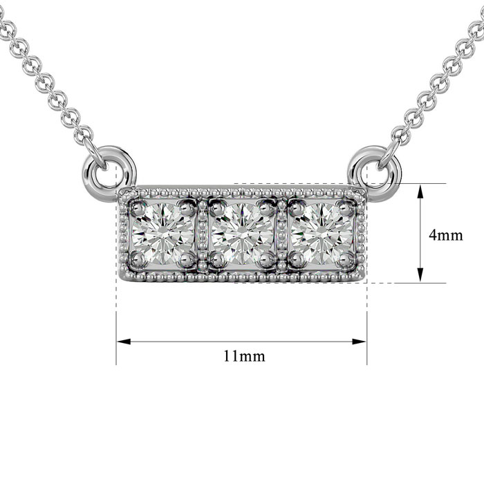1/4 Carat Diamond Three Stone Necklace In 14 Karat White Gold, 18 Inches