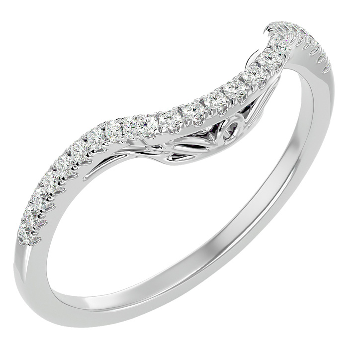 This wedding band contains 26 sparkling diamonds in H-I color, SI2-I1 clarity totaling 1/4 carat. This ring is in 14 karat white gold.
