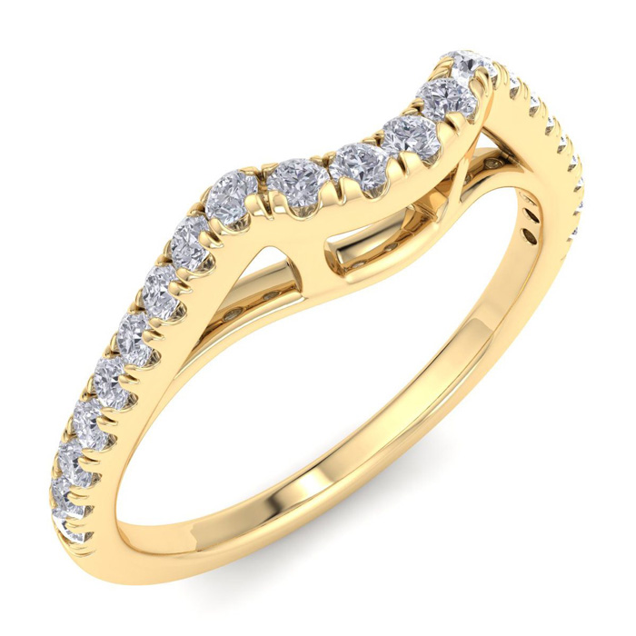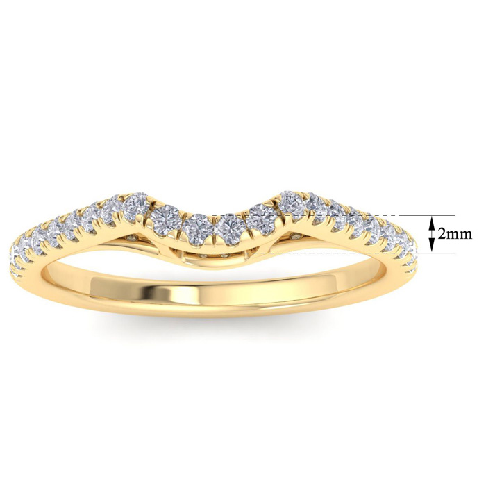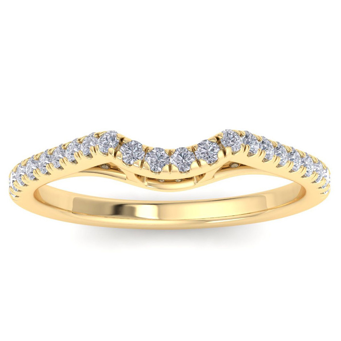 This matching wedding band features 18 diamonds total in H-I color and SI2-I1 clarity. Total carat weight is 1/4 carat and this ring is in 14 karat yellow gold.