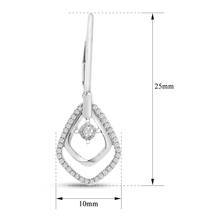 1/4 Carat Elegant Diamond Drop Earrings In Sterling Silver, 1 Inch