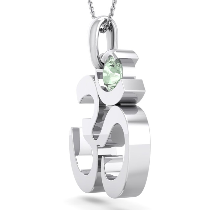 1/4 Carat Green Amethyst Om Necklace In 14 Karat White Gold, 18 Inches
