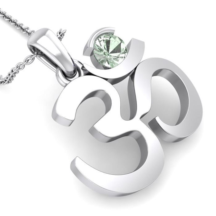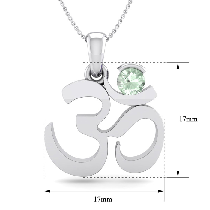 Retrograde Birthstones™ 1/4 Carat Green Amethyst Om Necklace In 14 Karat White Gold, 18 Inches
