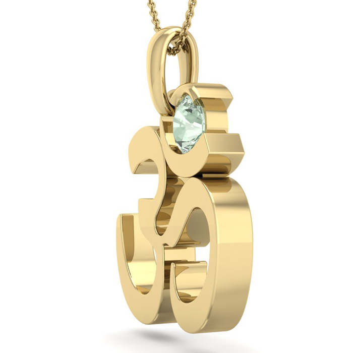 1/4 Carat Green Amethyst Om Necklace In 14 Karat Yellow Gold, 18 Inches