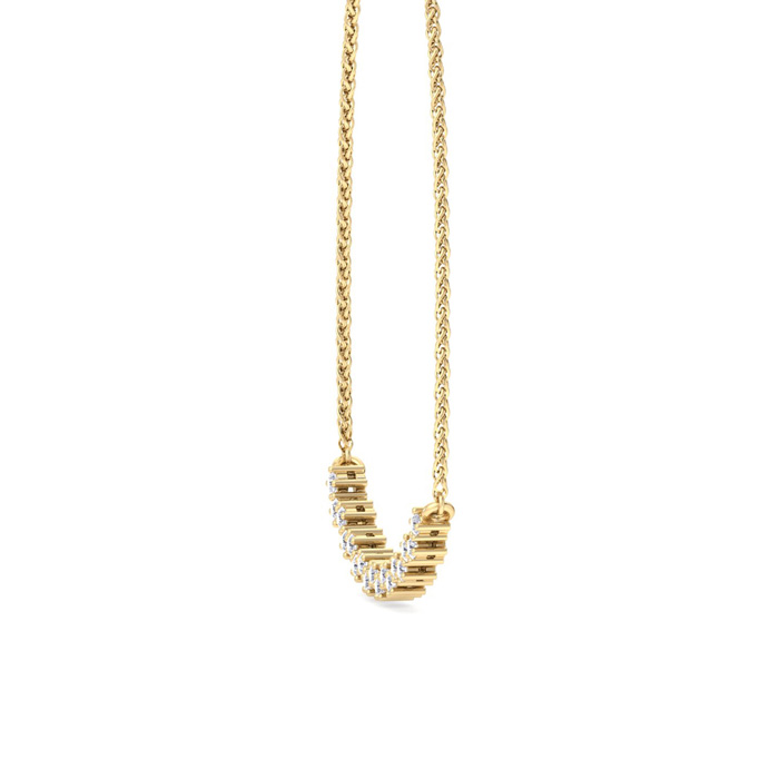 This fabulous diamond necklace features 17 sparkling round shape lab grown diamonds in G-H color, VS clarity. Total carat weight is 1/4 carat. This necklace is in 14 karat yellow gold and comes with an 18 inch cable chain with a lobster-claw clasp.