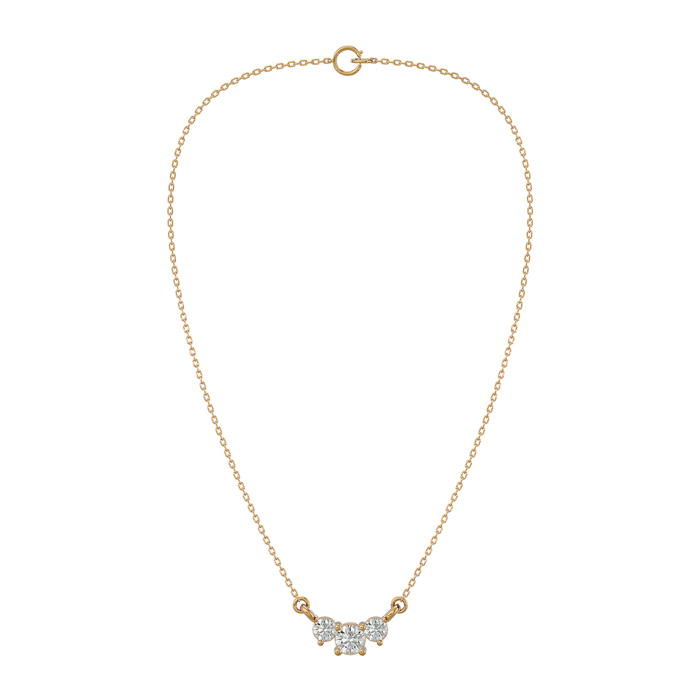 1/4 Carat Moissanite Three Stone Necklace In 14 Karat Yellow Gold, 18 Inches