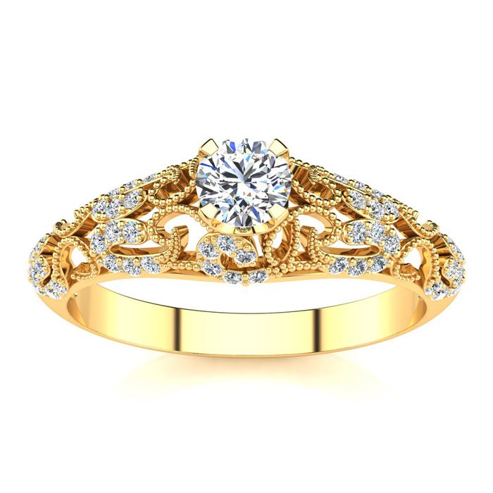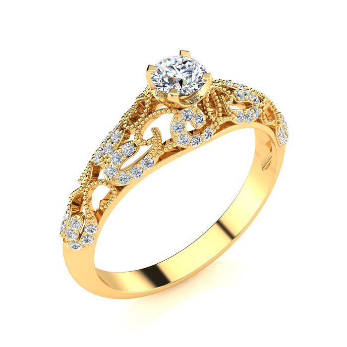 1/4 Carat Vintage Diamond Engagement Ring In 14 Karat Yellow Gold-SEMI MOUNT