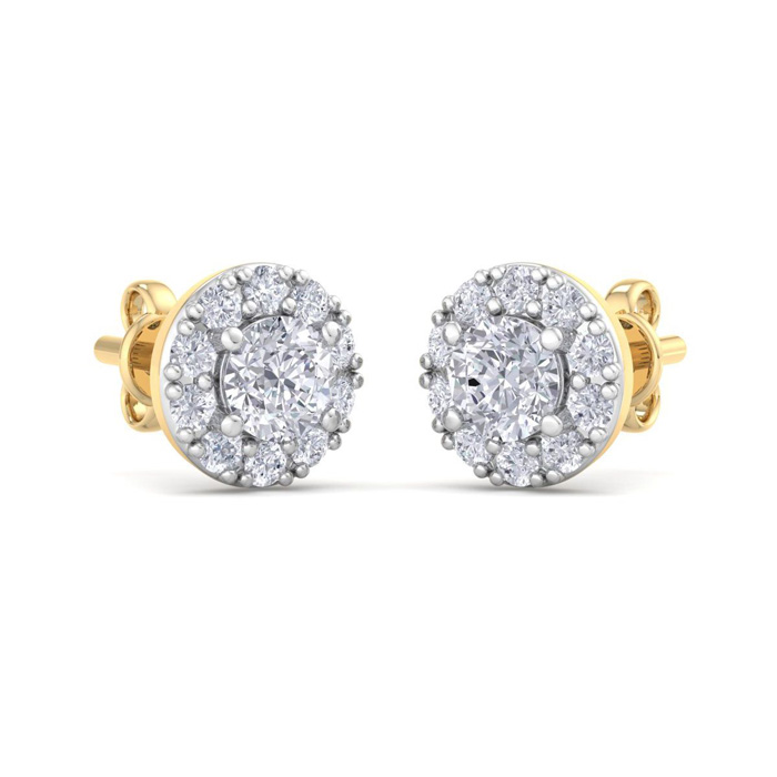 1/4ct Natural Diamond Stud Earrings With Pave Natural Diamonds in Yellow Gold