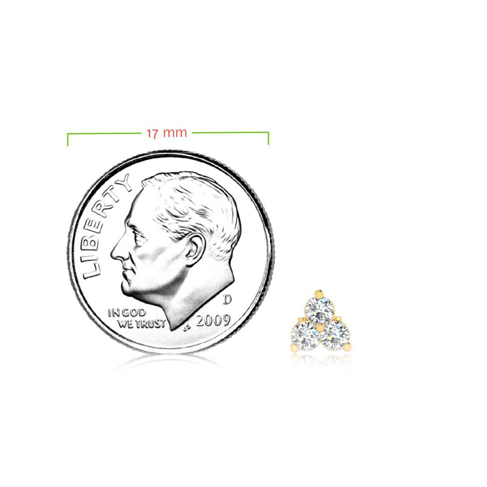 1/4ct Three Diamond Triangle Stud Earrings In 14K Yellow Gold