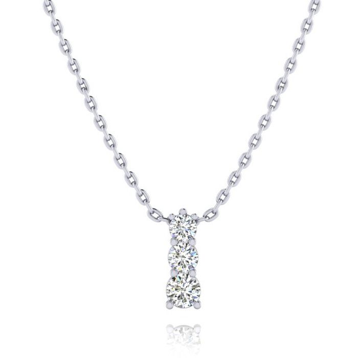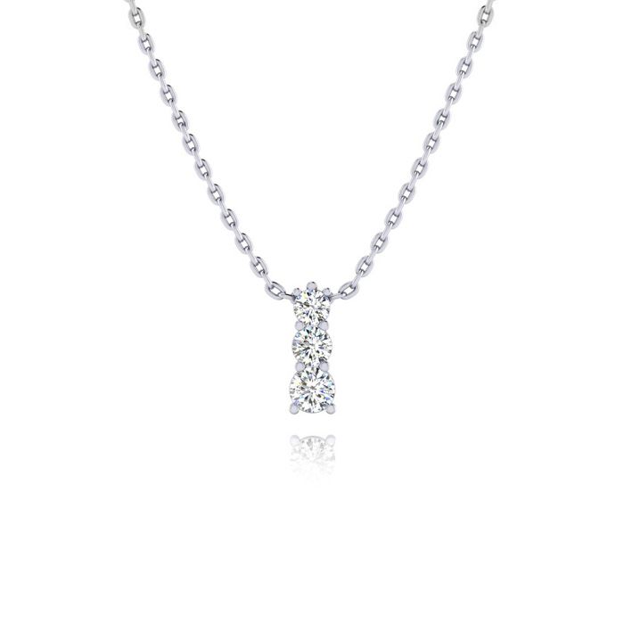 1/4ct Three Stone Natural Diamond Necklace In 14K White Gold, 18 Inches