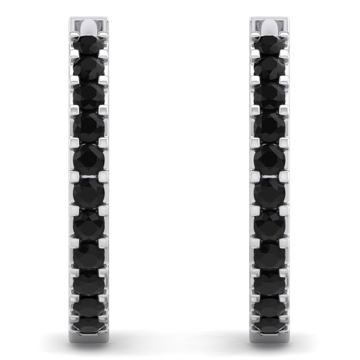 1/5 Carat Black Diamond Mens Hoop Earrings In 14 Karat White Gold