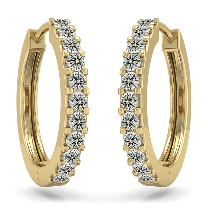 1/5 Carat Diamond Mens Hoop Earrings In 14 Karat Yellow Gold