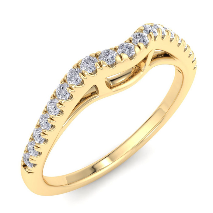 This matching wedding band features 18 diamonds total in H-I color and SI2-I1 clarity. Total carat weight is 1/5 carat and this ring is in 14 karat yellow gold.