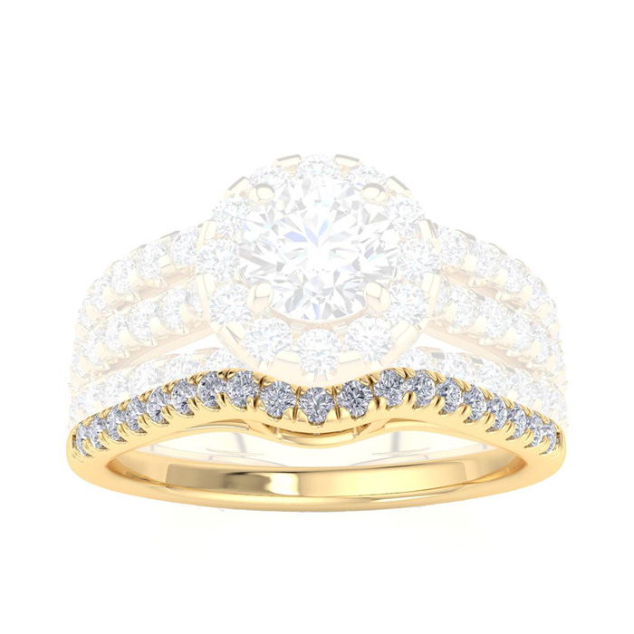 This matching wedding band features 18 lab grown diamonds total in G-H color and VS clarity. Total carat weight is 1/5 carat and this ring is in 14 karat yellow gold.