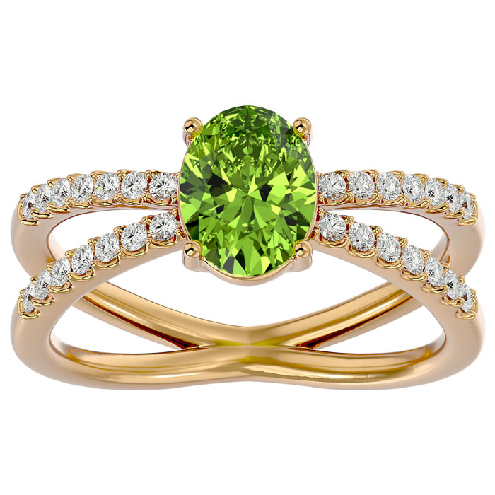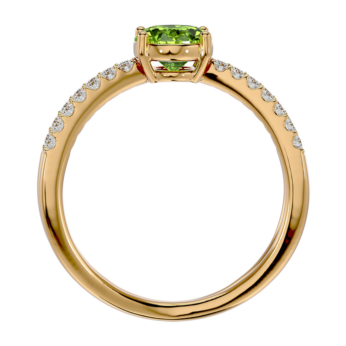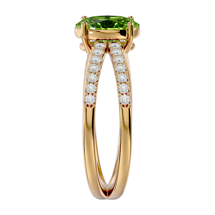 1.60 Carat Oval Shape Peridot and Diamond Ring In 14 Karat Yellow Gold