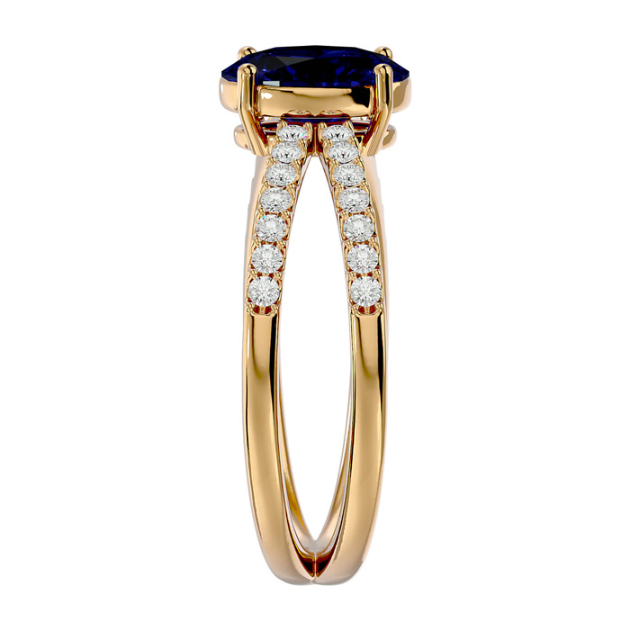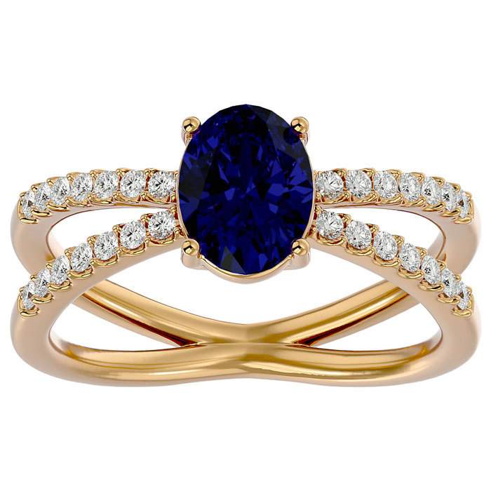 1.85 Carat Oval Shape Sapphire and Diamond Ring In 14 Karat Yellow Gold