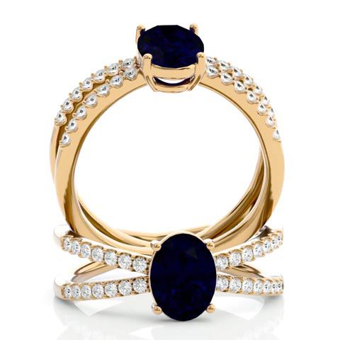 1.85 Carat Oval Shape Sapphire and Diamond Ring In 14 Karat Yellow Gold