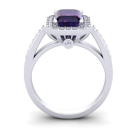 1 Carat Amethyst and Halo Diamond Ring In 14 Karat White Gold