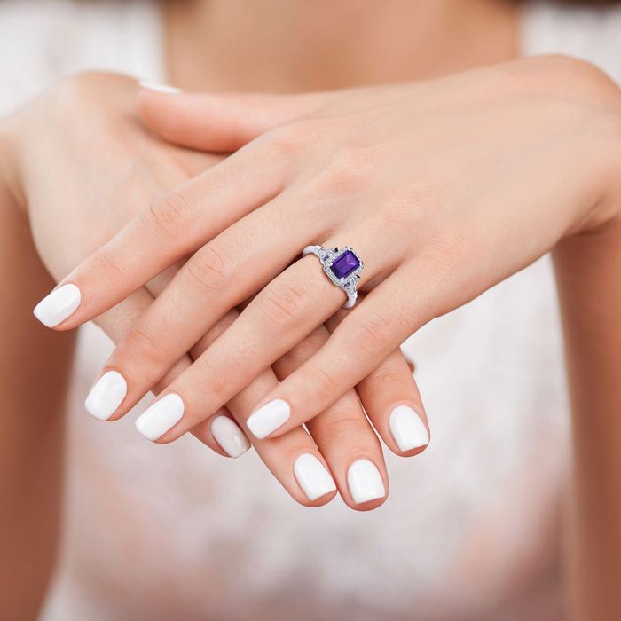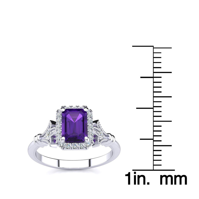1 Carat Amethyst and Halo Diamond Vintage Ring In 14 Karat White Gold