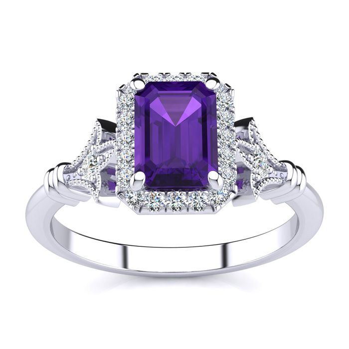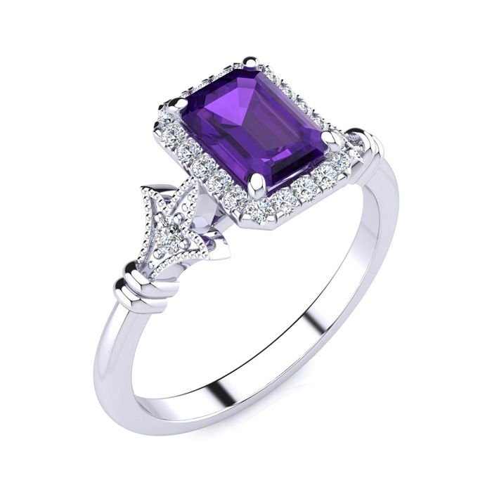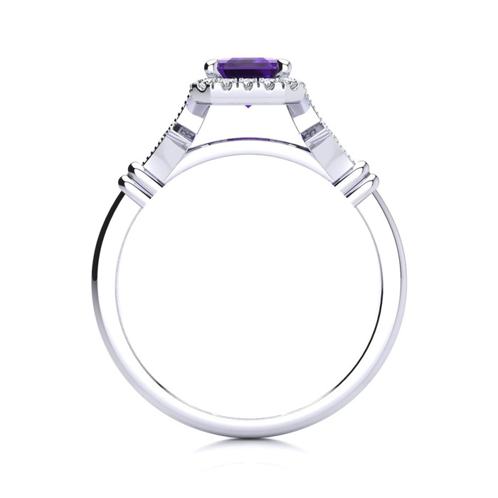 Retrograde Birthstones™ 1 Carat Amethyst and Halo Diamond Vintage Ring In 14 Karat White Gold