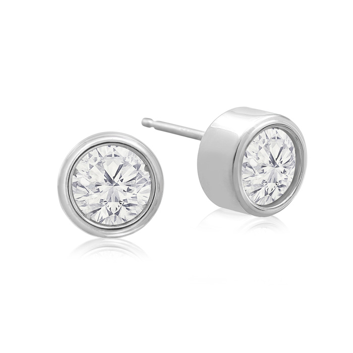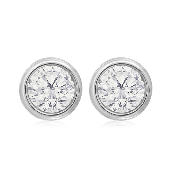 1 Carat Natural Bezel Set Diamond Stud Earrings Crafted In 14 Karat White Gold