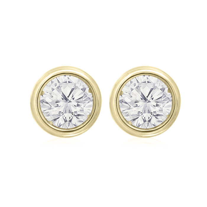 1 Carat Natural Bezel Set Diamond Stud Earrings Crafted In 14 Karat Yellow Gold