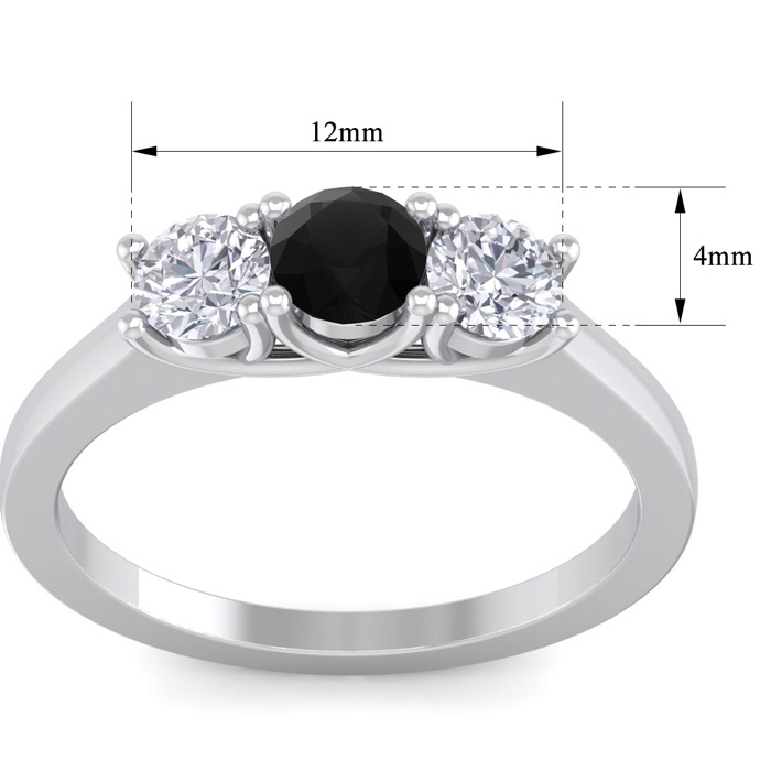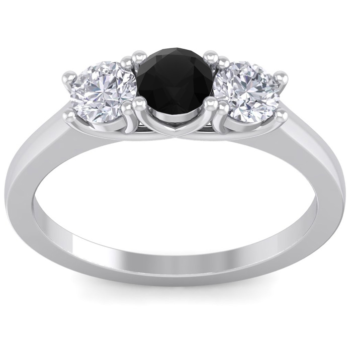 1 Carat Black Diamond Three Diamond Ring In 14 Karat White Gold