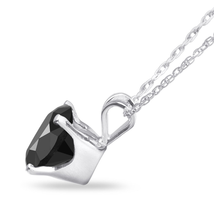1 Carat Black Moissanite Necklace in Solid 14K White Gold