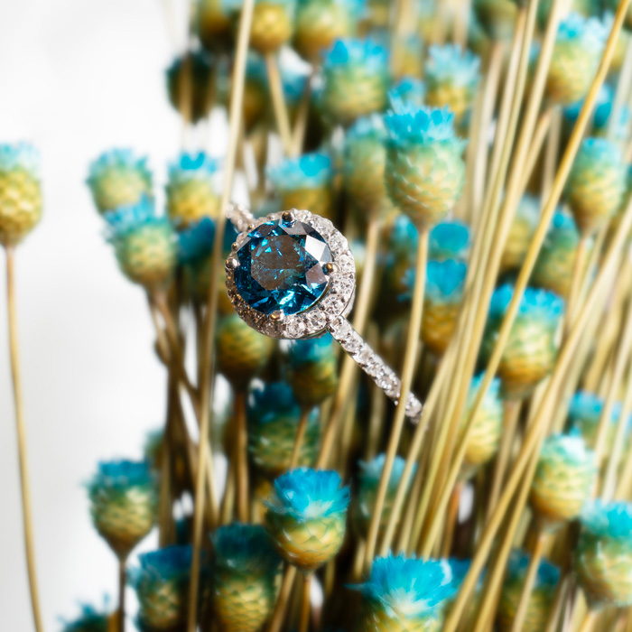 The blue diamond is stunning overall the ring sparkles......engagment--Bronwyn.