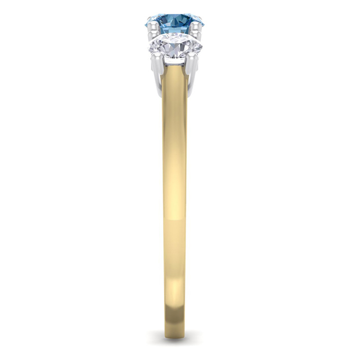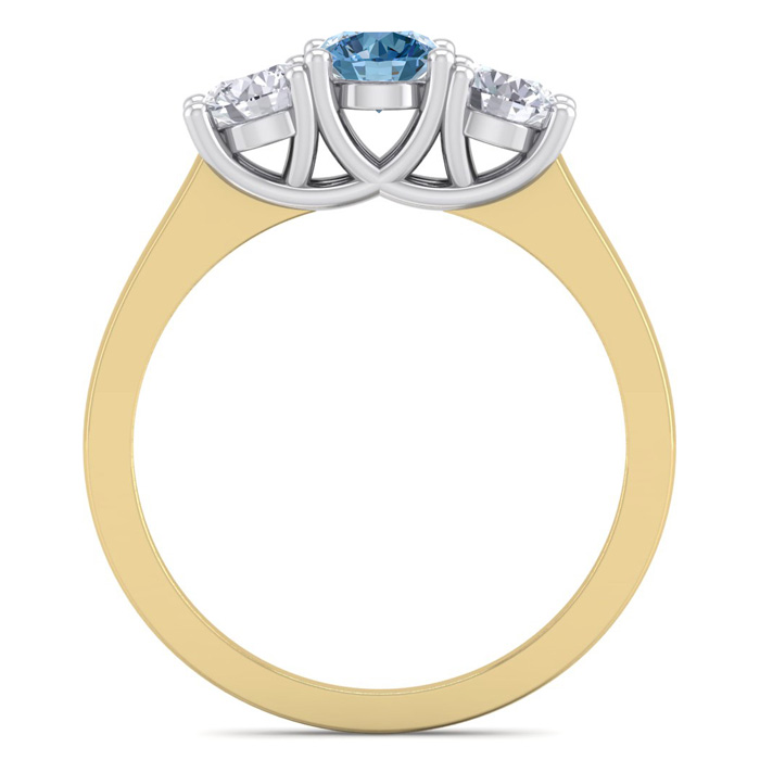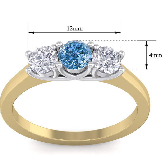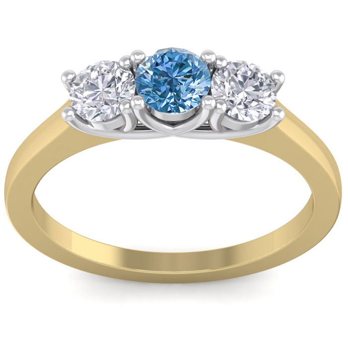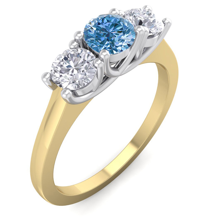 1 Carat Blue Diamond Three Diamond Ring In 14 Karat Yellow Gold